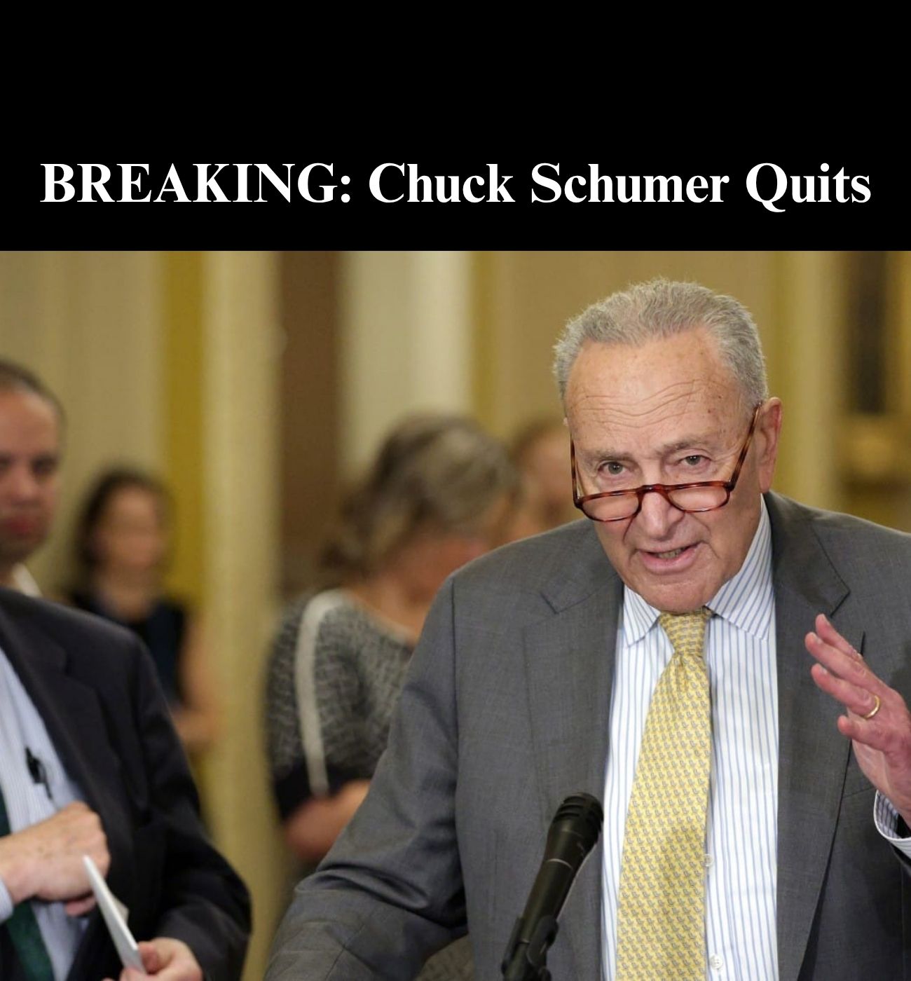 “He took his ball, he went home, leaving Democrats and Republicans alike wondering what the hell happened. Trump’s all-caps Tweet said it all. In a fit of rage, Trump threw in the towel, sent Republicans home, and was unable to do the basic work of negotiating,” Schumer said, standing next to a poster-sized version of the president’s post.