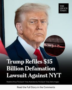 Trump Refiles $15 Billion Defamation Lawsuit Against New York Times After Court Dismissal