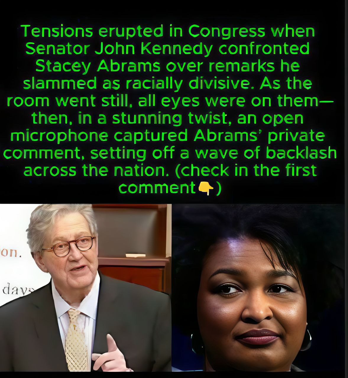 In the end, the confrontation between John Kennedy and Stacey Abrams was about more than just one statement—it was about the tone, direction, and health of American political discourse in an era defined by division. And as this latest chapter unfolds, it serves as yet another example of how every word, every reaction, and every unguarded moment in Congress can reverberate far beyond the chamber walls.
